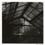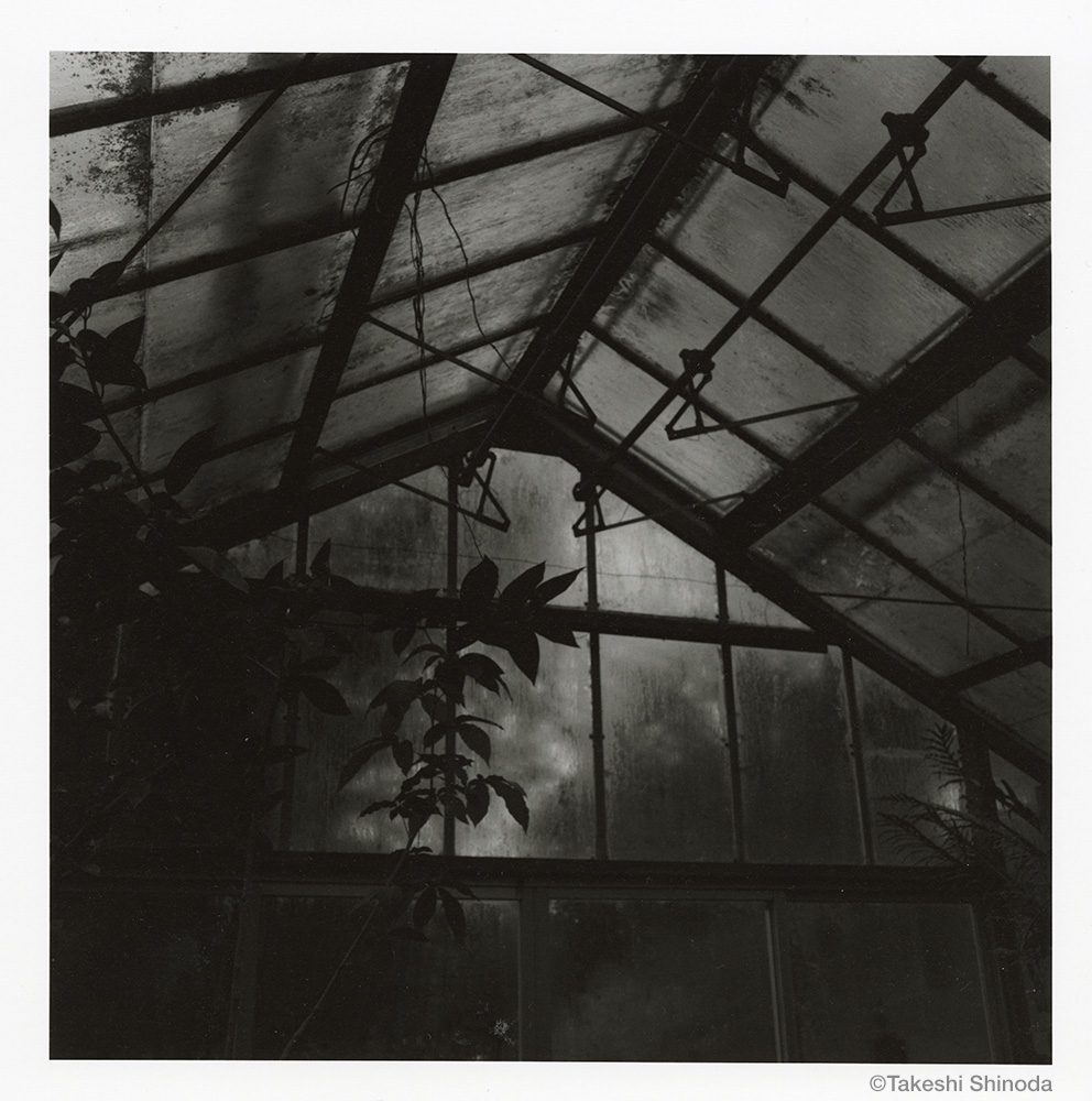 横浜市の北部にある児童遊園施設の敷地の奥に、打ち捨てられたような温室がひっそりと佇んでいる。曇ったガラスに覆われた古いドームは、耐震補強もされておらず、閉ざされた入口から覗いても、めぼしい熱帯植物の姿は見当たらない。空間だけが際立つ中、ふと足元に目を向けると、窓の外を眺めるように肉厚な葉が並んでいる。黒の鉄枠に縁どられたガラスの画面は、透過する光と反射によって鏡面となった部分が交錯し、ガラスを隔てた二つの異空間を創り出している。