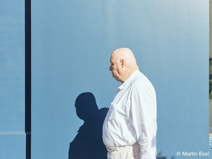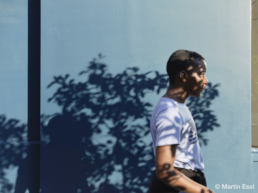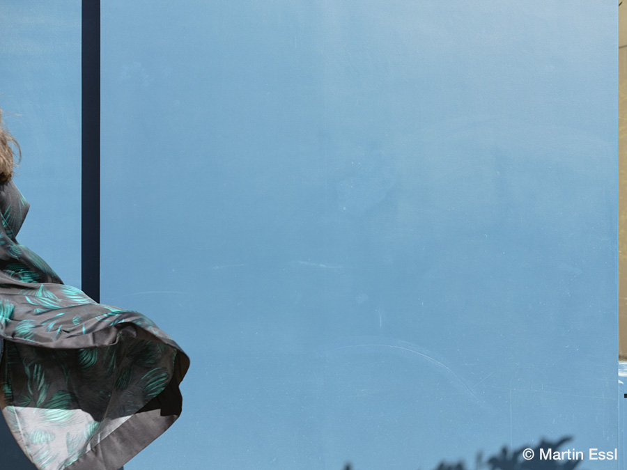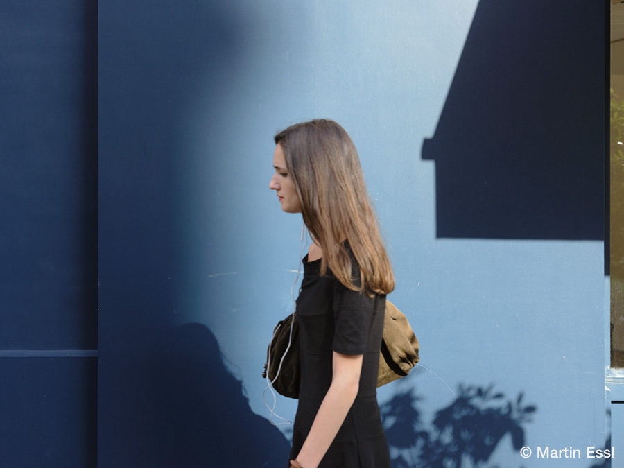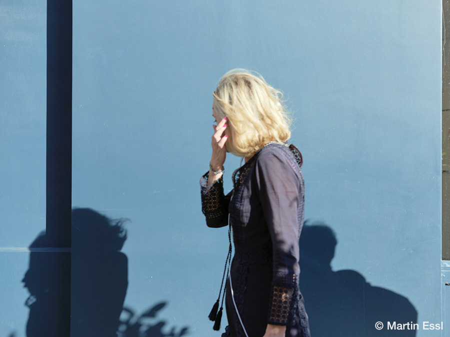 本展では、2019年にMartinがパリ横断の道中で発見した青い壁を背景に据えて、その前を過ぎゆく通行人の姿を定点で夕暮れ時に撮影した本作の主軸となる連作を中心に、ドイツの出版社・KEHRERより刊行された同名作品集「Le bateau ivre Paris 2019–2023」での収録作品を、日本での開催に合わせて阿波和紙へと印刷したプリントで展示いたします。
