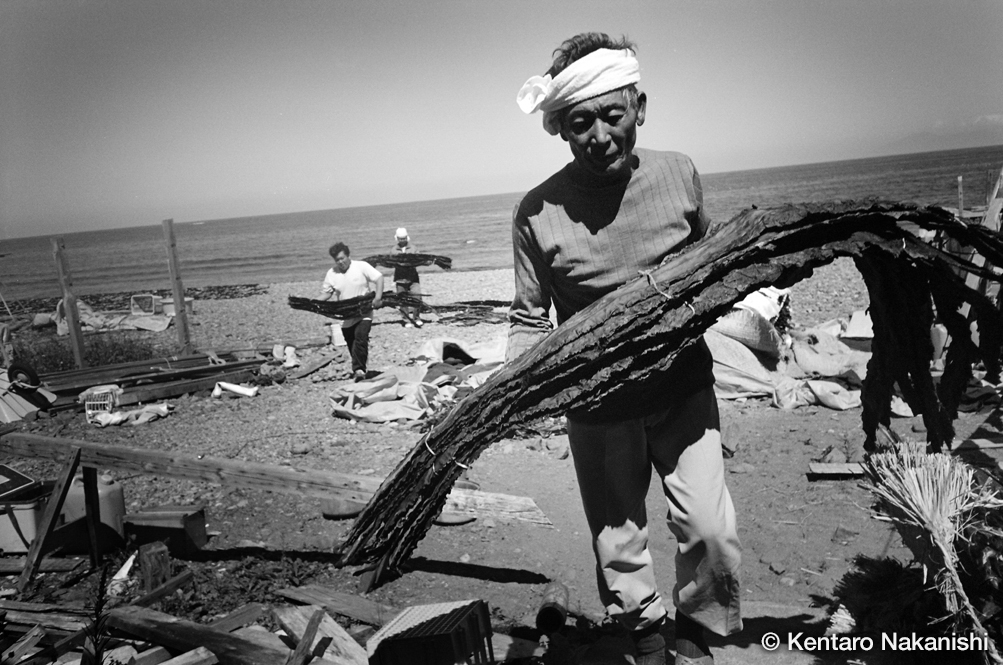 時化の翌朝、浜に押し寄せる大漁の昆布