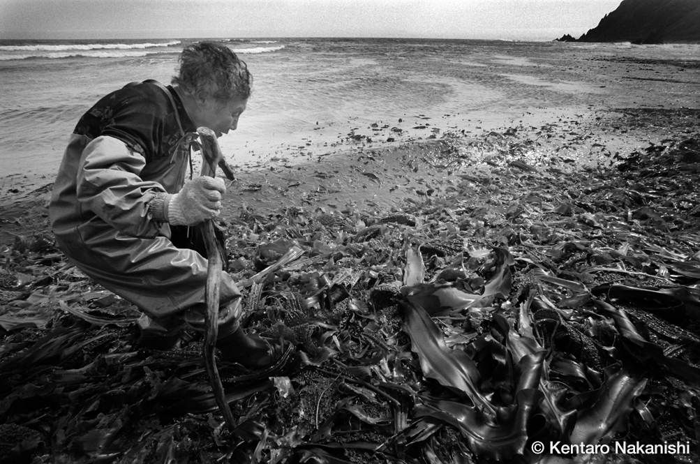 時化の翌朝、浜に押し寄せる大漁の昆布