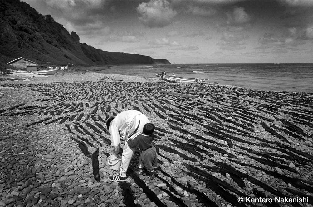 時化の翌朝、浜に押し寄せる大漁の昆布