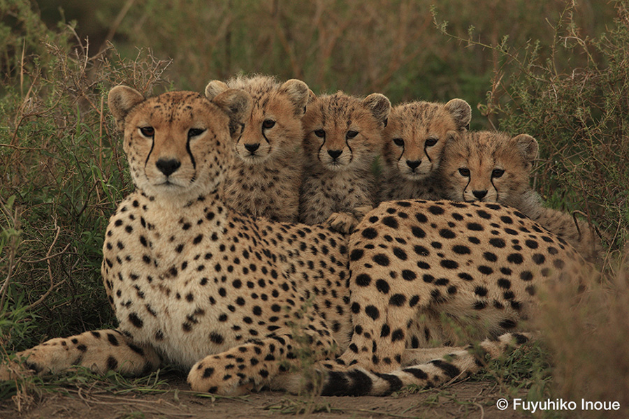 目覚めたチーター親子が凍えた体を寄せあっていました。厳しい一日が始まる前の幸せな時間です。