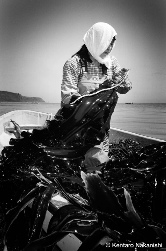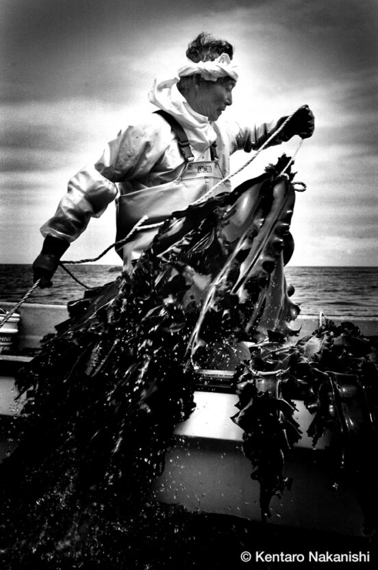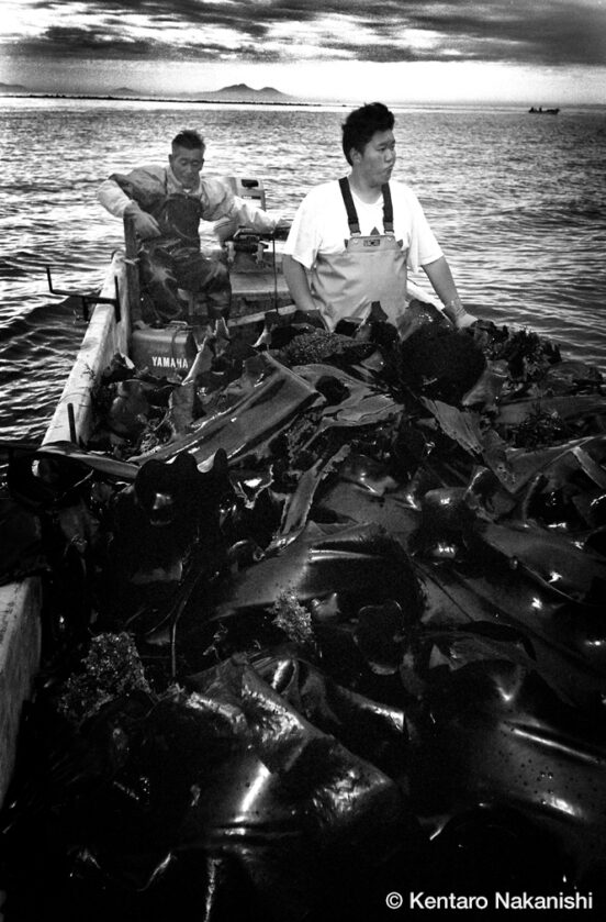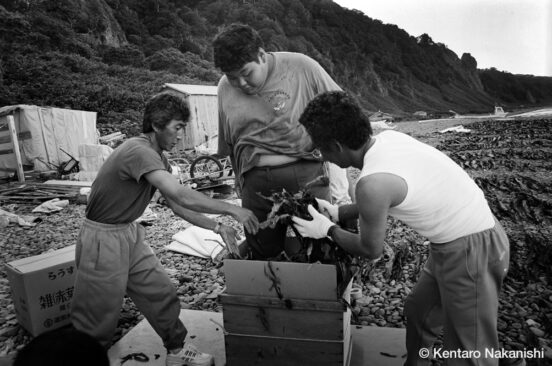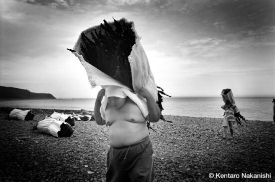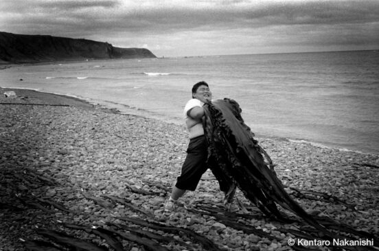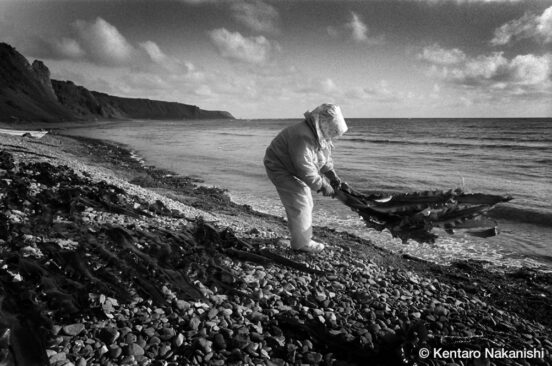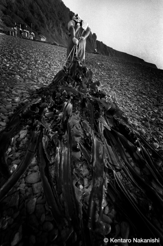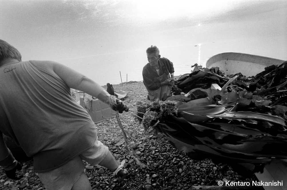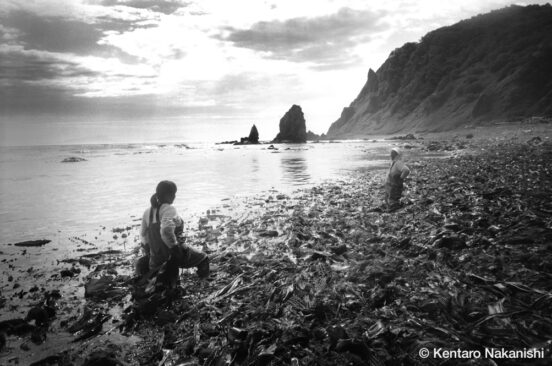時化の翌朝、浜に押し寄せる大漁の昆布