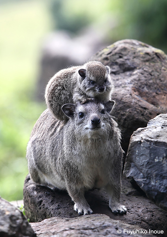 寒い夜が去り、日向ぼっこを始めたハイラックスの親子。 冷え切った体に、母の背中は天然の湯たんぽなのでしょう。
