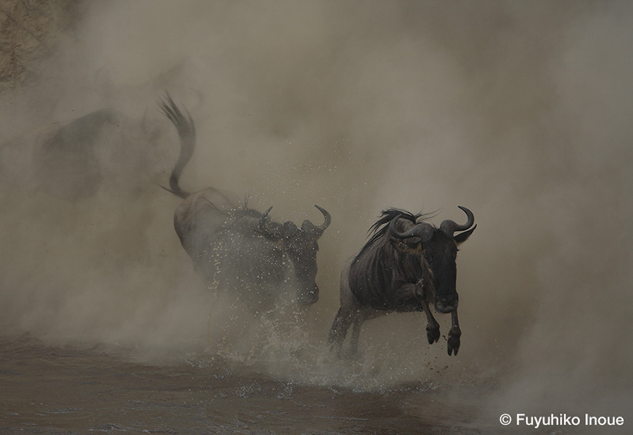 舞い上がる砂塵の中から沸き上がるように現れるヌーの群れ。 ただひたむきに前に向かって進んでいく。 生きようとするのが、命の本質。