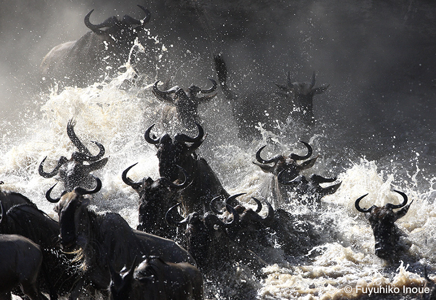 マラ川に到達すると、渡るかどうか、長い時間悩みながら右往左往するヌーの群れ。 「渡って先に進め」という本能の声と、「危険だ、戻れ」という意識のせめぎあいの後、本能に操られるかのように先に進んでいきます。